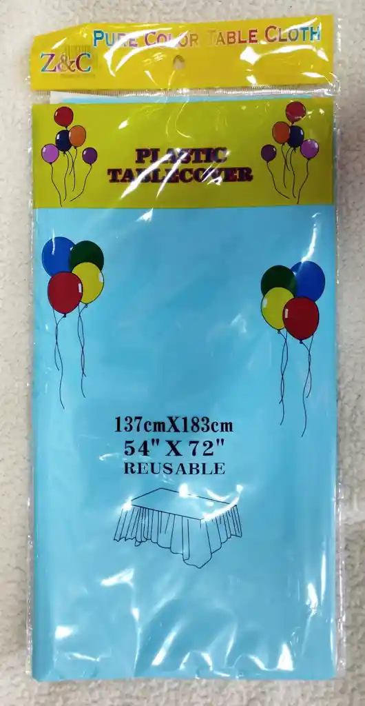 Mantel plástico tipo tela color azul claro de 137cm x 183cm impermeable y reutilizable