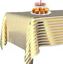 "1 mantel blanco con rayas doradas rectangular. Medidas 1.37mts x 1.83mt"