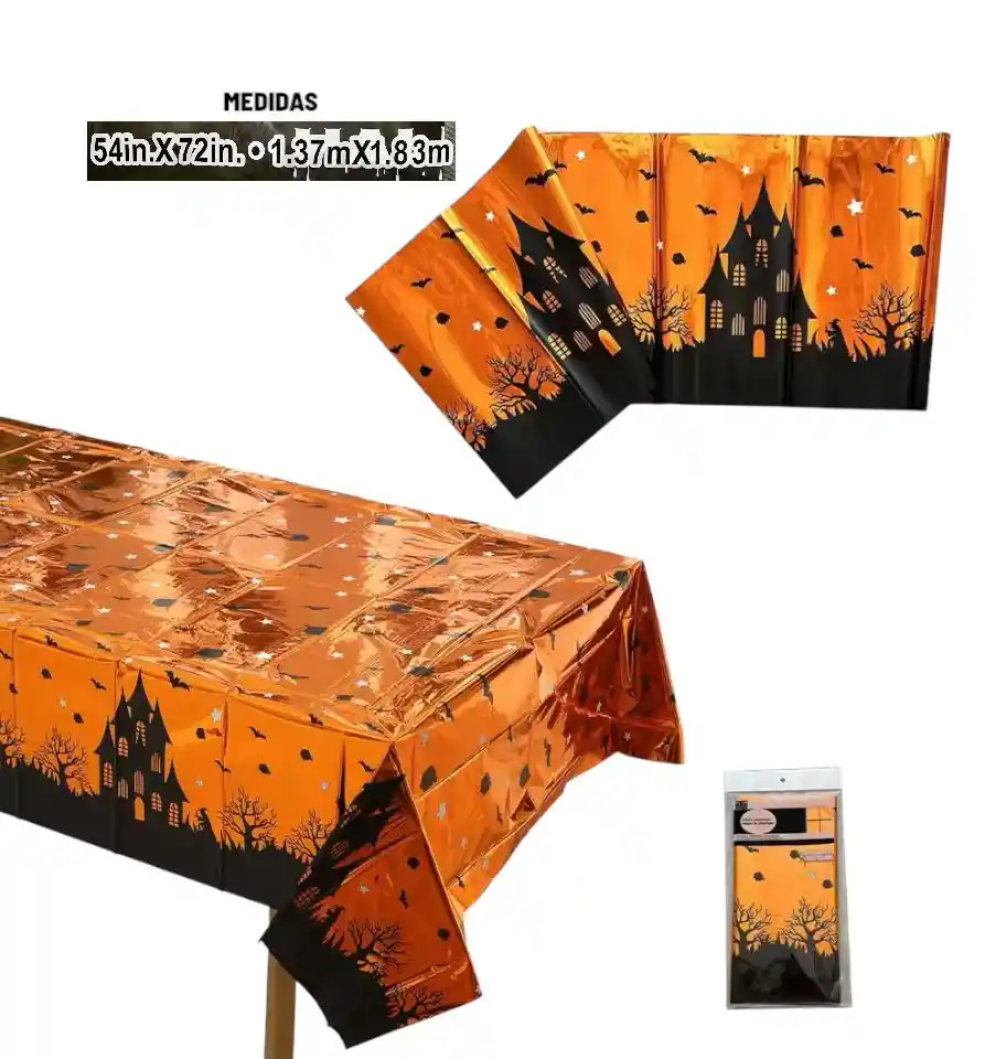 Mantel Rectangular Metalizado Naranja Halloween 137 X 183 Cm, Ideal para decorar tus fiestas de Halloween