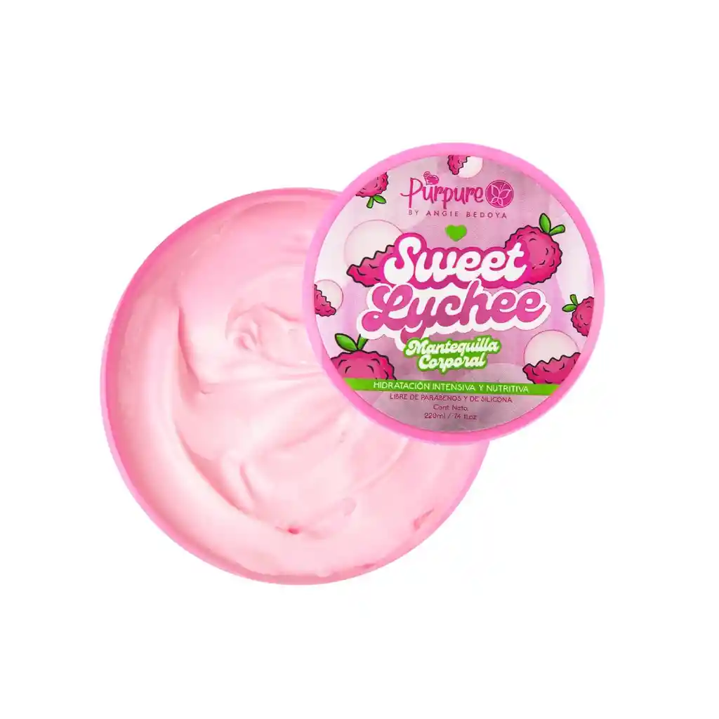 Mantequilla corporal ultra hidratante con delicioso aroma a lychee. Su textura cremosa se derrite al contacto con la piel, dejándola suave, nutrida y con un acabado lleno de brillitos hermosos que iluminan sutilmente tu cuerpo. Ideal para usar después del baño y lucir una piel radiante, perfumada y con glow todo el día