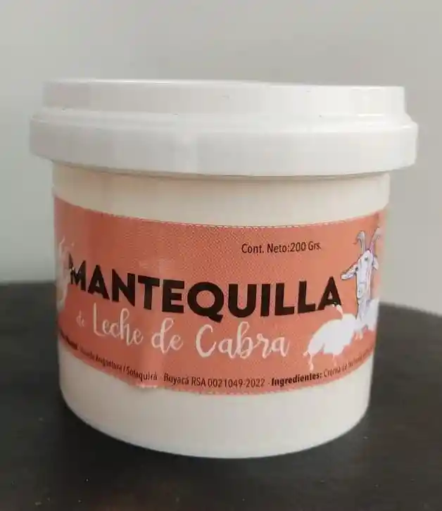 Mantequilla artesanal hecha desde cero a partir de la crema de leche de cabra. Sin conservantes ni aditivos. Hecha en Sotaquirá, Boyacá.