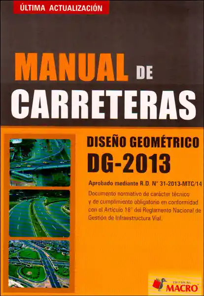 El Ministerio de Transportes y Comunicaciones (Mtc) en su Calidad de Órgano Rector a Nivel Nacional en Materia de Transporte y Tránsito Terrestre es la Autoridad Competente Para Dictar Las Normas Correspondientes a la Gestión de la Infraestructura Vial y Fiscalizar su Cumplimiento. La Dirección General de Caminos y Ferrocarriles es el Órgano de Línea de Ámbito Nacional Encargado de Normar Sobre la Gestión de la Infraestructura de Caminos Puentes y Ferrocarriles Así Como de Fiscalizar su Cumplimiento. El Manual de Carreteras Diseño Geométrico Forma Parte de Los Manuales de Carreteras Establecidos Por el Reglamento Nacional de Gestión de Infraestructura Vial Aprobado Por D.S. N&Deg 034-2008-Mtc y Constituye Uno de Los Documentos Técnicos de Carácter Normativo Que Rige a Nivel Nacional y es de Cumplimiento Obligatorio Por Los Órganos Responsables de la Gestión de la Infraestructura Vial de Los Tres Niveles de Gobierno: Nacional Regional y Local. ISBN: 9786123041922