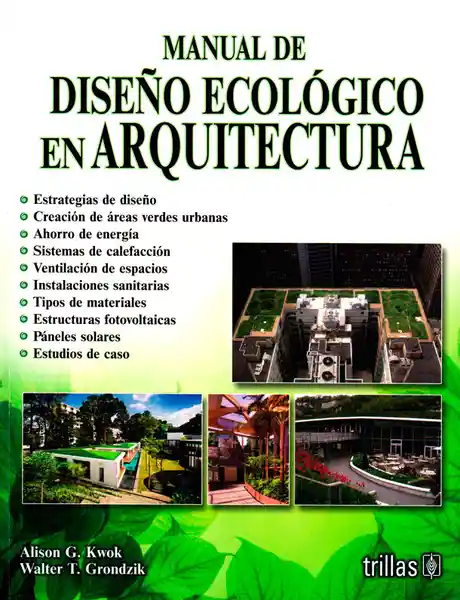Autor Alison G. Kwok Walter T. Grondzik. Estrategias de Diseño Creación de Áreas Verdes Urbanas Ahorro de Energíasistemas de Calefacción Instalaciones Sanitarias Tipos de Materiales Estructuras Fotovoltaicas Esta Obra Tiene Como Finalidad Proporcionar la Información Necesaria Para Utilizar y Aplicar Adecuadamente Diversas Estrategias Verdes Que se Pueden Incluir y Adaptar a Cualquier Proyecto. ISBN: 9786071721167