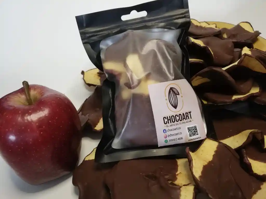 Manzana deshidratada cubierta con chocolate dulce