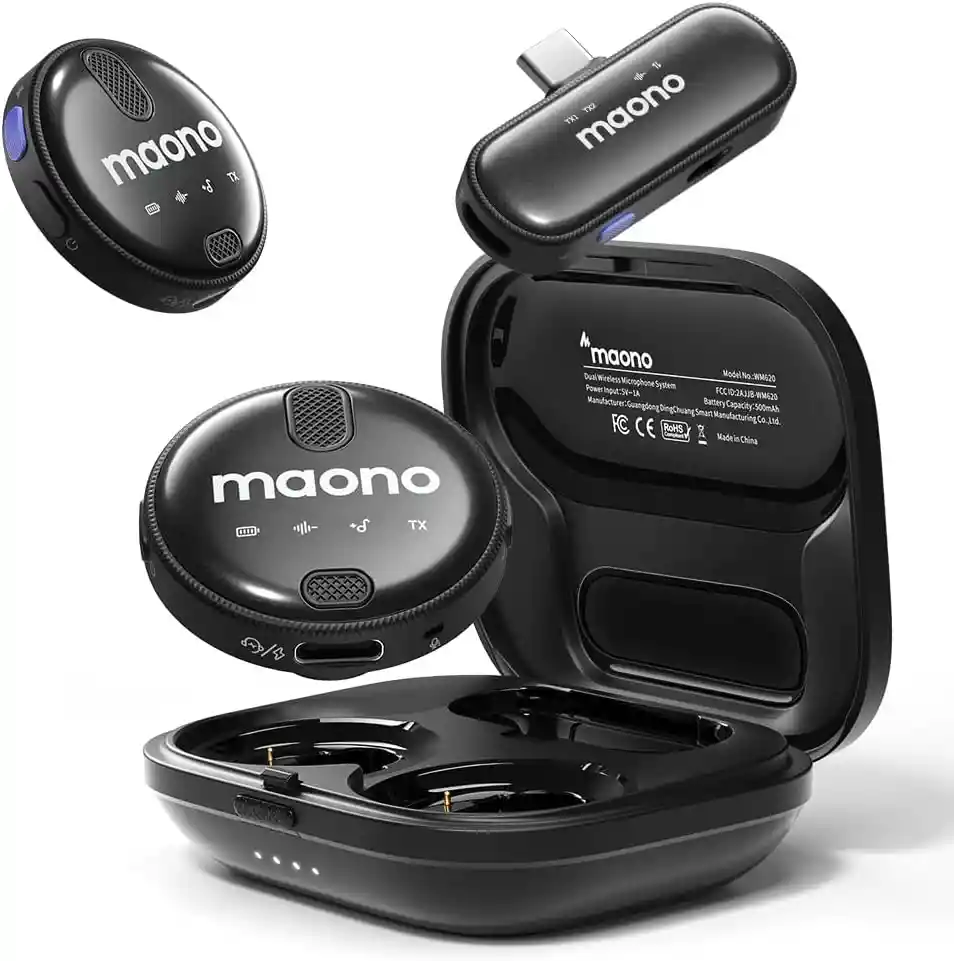 Tamaño pequeño, gran potencial: a pesar de su pequeño tamaño y peso de solo 0.39 oz, ofrece un gran potencial creativo. El micrófono Lavalier inalámbrico WM620 es una poderosa herramienta para creadores de contenido, con una calidad de sonido impecable y cancelación de ruido de 2 niveles. Se puede fijar cómodamente magnéticamente o enganchar a tu cuello, asegurando que se mantenga en su lugar mientras te mueves. Además, el brillo negro perlado en su estuche añade un toque de elegancia a tu atuendo Calidad de sonido de grado CD: con una frecuencia de muestreo de 16 bits/48 kHz, el micrófono inalámbrico Lavalier WM620 captura audio con precisión y conserva las sutilezas y dinámicas de tu voz. El receptor está equipado con un interruptor deslizante de ganancia de 4 niveles, lo que le permite ajustar fácilmente el volumen de las grabaciones de su teléfono. Di adiós a las preocupaciones sobre la ganancia fija que interfiere con tus niveles de sonido. Con una calidad de sonido