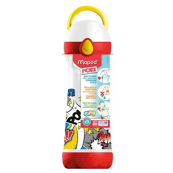 Botella Picnik Comic Maped 580 mL ¡Adiós a Los Derrames y Fugas! Con Esta Botella Los Peques Van a Poder Llevar su Bebida a Todas Partes Con Mayor Seguridad y Comodidad. es Súper Práctica, Solo Deberán Apretar el Botón y al Beber Apretar la Boquilla. ¡Esta Magnífica Botella Les va a Acompañar a Todas Partes! Edad: A Partir de 3 Años, Antiderrame, Cierre Automático al Dejar de Beber, Fácil de Abrir, Sólo Aprieta el Botón y se Levante la Tapa, Fácil de Lavar la Boquilla Puede Ser Desarmada