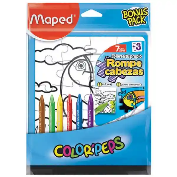 Maped Contiene 7 Unidades: Crayones 6 Und y Rompecabezas 1 Und. Colorea tu Propio Rompecabezas, Disponible en Dos Motivos: Tucán y Cocodrilo, Ideal Para Niños Entre 3 y 5 Años.