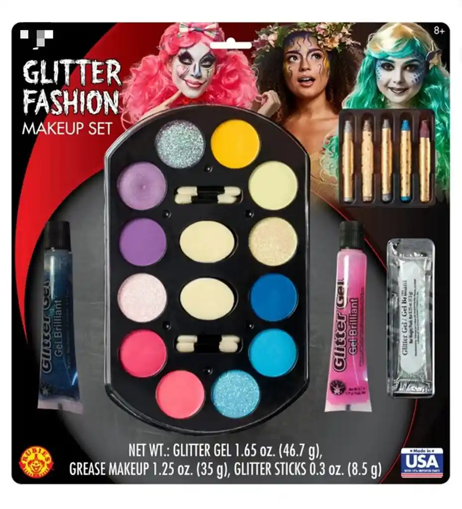 Métete en el personaje transformando tu apariencia personalizada con el kit de maquillaje Rubies Halloween Value. El kit incluye una paleta de maquillaje de 12 colores, un tubo de gel con brillo rosa, un tubo de gel con brillo verde, 5 barras de maquillaje con brillo, un paquete de gel con brillo, esponjas de maquillaje y aplicadores de esponja. El maquillaje Rubies soluble en agua y no graso está elaborado con los más altos estándares de calidad y seguridad en la fabricación, lo que hace que su eliminación sea muy sencilla con agua y jabón. ¡Deja volar tu imaginación con todos los colores disponibles: negro, blanco, verde, rojo, azul, naranja, gris zombi, verde y muchos más! Planifica tu diseño usando barras de maquillaje Rubies para delinear, agregar detalles o rellenar áreas pequeñas. . NOTA: No recomendado para niños menores de 8 años. Rubies fabrica maquillaje desde 1992. Bandeja de maquillaje de 12 colores/Tubo de gel con purpurina rosa/Tubo de gel con purpurina verde/5 barras de maquillaje con purpurina/Paquete de gel con purpurina/Esponjas de maquillaje/Aplicadores de esponja