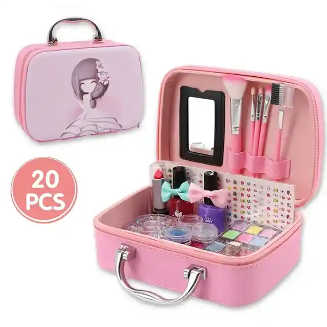 🌈Un set de cosméticos en un bolso-estuche es un regalo increíble para una niña que le ayudará a aprender a cuidar su cuerpo, enfatizando su belleza. 🌈Al mismo tiempo, mamá puede estar tranquila, los ingredientes son solo naturales y no causan alergias en absoluto. 🌈Este paquete incluye sombra de ojos, rubor, lápiz labial, esmalte de uñas, brillo de labios, brocha de maquillaje, brocha para uñas, soporte para dedos y peine para espejos este juego completo de maquillaje de juguete. 🌈Material principal: ABS y pasta de polen natural. Color Rosa.