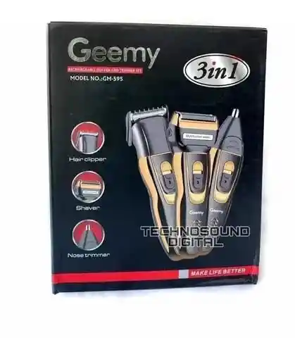 *Maquina 3en1 Geemy Afeitadora Patillera Nariz Recargable* Cabezales intercambiables (Maquina de afeitar, patillera y cabezal para corte de vellos de la nariz- oídos ) . Diseño ergonómico con agarre suave al tacto La tecnología de Confort de la Gemey GM-595 protege contra cortes rasguños y jalones. Recargable. Skin-friendly: probado para piel sensible. Recubrimiento antimicrobiano. Voltaje: 110/60Hz Afeitadora recargable 3en1 10 h tiempo de carga Corta pelos de nariz 2 cabezas intercambiables GM-566 recargable Timmer afeitado 3 en 1 juego para los hombres Marca Gemei Modelo: GM-566 Voltaje: 220-240V 50 / 60Hz Potencia: 3W recargable