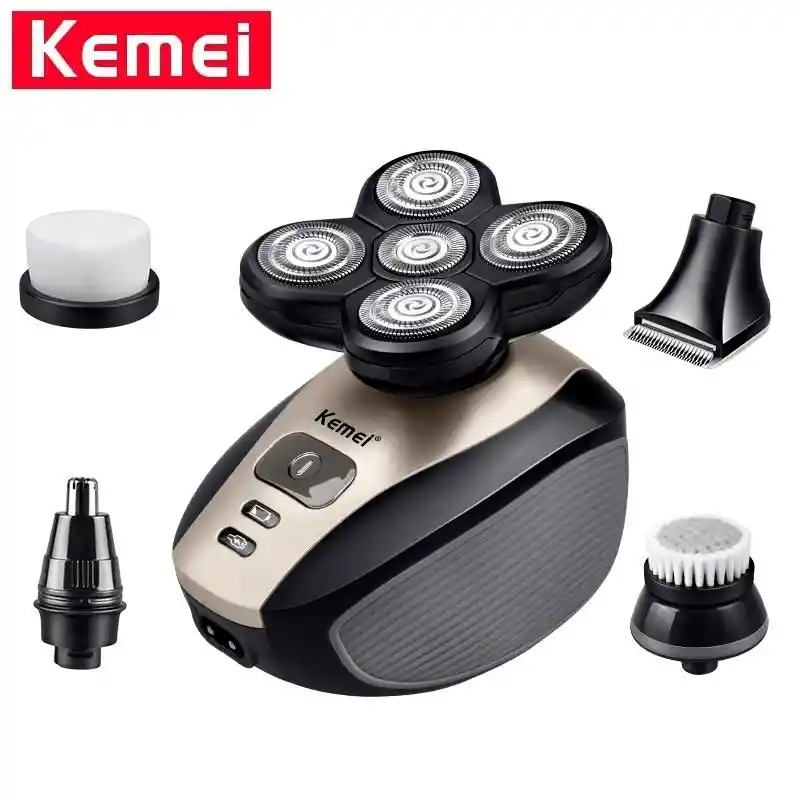 Maquinilla de afeitar eléctrica 5 en 1 5D recargable impermeable de cinco cabezas. afeitadora de pelo para un aspecto calvo perfecto. inalámbrico y recargable por USB
