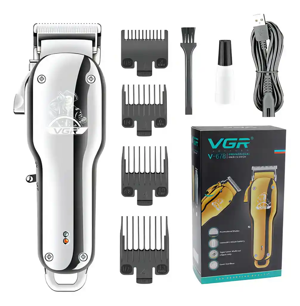 Logra cortes precisos y acabados profesionales desde casa o en barbería con la máquina VGR 678. Su diseño robusto, motor potente y cuchilla de alta precisión permiten trabajar cabello y barba con facilidad, ofreciendo resultados limpios y uniformes en cada pasada. Funciona de manera inalámbrica para mayor comodidad y control. Características principales Motor potente y silencioso para uso continuo Cuchilla metálica de alta precisión para cortes definidos Funcionamiento inalámbrico con batería recargable Diseño ergonómico y resistente Ideal para barbería profesional y uso personal Incluye peines guía para diferentes largos de corte Medidas aproximadas Alto: 15 cm Largo: 4 cm Ancho: 3 cm Contenido del paquete Máquina cortadora VGR 678 Cable USB de carga Aceite lubricante Cepillo de limpieza Peines guía Protector de cuchilla Caja original
