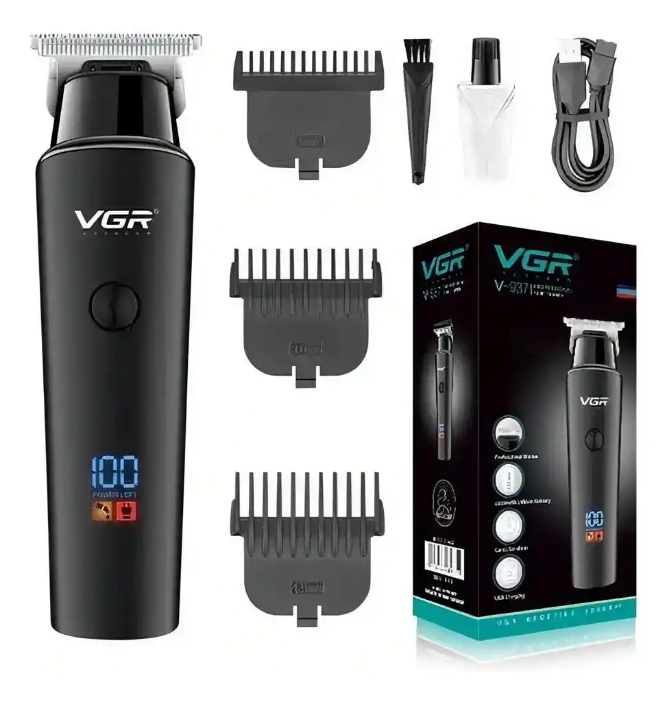 Voltaje: 5V. Funciones adicionales: cortadora de pelo y barba. Es inalámbrica y funciona con batería recargable. Puedes utilizarla durante un tiempo máximo de 500 m. Se carga al 100% en aproximadamente 4 h. Posee cabezales lavables. Práctica para llevarla a todos tus viajes. Tiene display digital. Corta hasta 4.5 mm. Viene con 3 peines. Accesorio incluido: máquina vgr.
