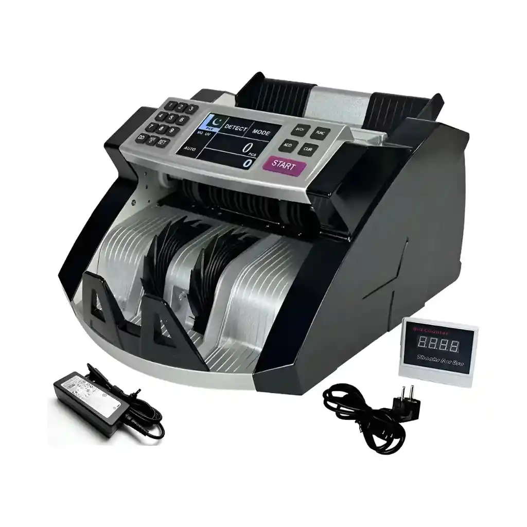CONTADOR DE BILLETES PROFESIONAL RH220 - DETECCION ANTI-FALSIFICACION CANSADO DE CONTAR BILLETES MANUALMENTE? ESTA ES TU SOLUCION! - CUENTA 1000+ BILLETES POR MINUTO - 30 veces mas rapido que manual - DETECCION TRIPLE: UV + MG + IR - Detecta billetes falsos automáticamente - PANTALLA LED DIGITAL - Visualiza conteo en tiempo real - PERFECTO PARA: Bancos, supermercados, restaurantes, corresponsales MAXIMA SEGURIDAD ANTI-FALSIFICACION * DETECCION UV (Ultravioleta): Marcas de seguridad invisibles * DETECCION MG (Magnetica): Tintas magneticas especiales * DETECCION IR (Infrarrojo): Elementos de seguridad avanzados * ALARMA AUTOMATICA cuando detecta billetes sospechosos * FUNCION BATCH - Cuenta cantidades exactas * MODO ADD - Suma multiples lotes automaticamente IDEAL PARA TU NEGOCIO PERFECTA PARA: - Corresponsales bancarios - Supermercados y minimercados - Restaurantes y cafeterias - Farmacias y droguerias - Cualquier comercio con efectivo BENEFICIOS COMPROBADOS: - Elimina errores humanos 100% - Ahorra 90% del tiempo de conteo - Mejora seguridad de caja - Facilita cuadre diario - Profesionaliza atencion al cliente ESPECIFICACIONES TECNICAS PANTALLA: LED digital alta visibilidad VELOCIDAD: +1000 billetes/minuto DETECCION: UV + MG + IR triple seguridad FUNCIONES: COUNT, ADD, BATCH, DETECT DETECCION MULTI-MONEDA: Euros (EUR), Pesos Colombianos (COP), Dolares (USD) COMPATIBILIDAD: Billetes 50 mil y 100 mil pesos DISENO: Compacto y profesional