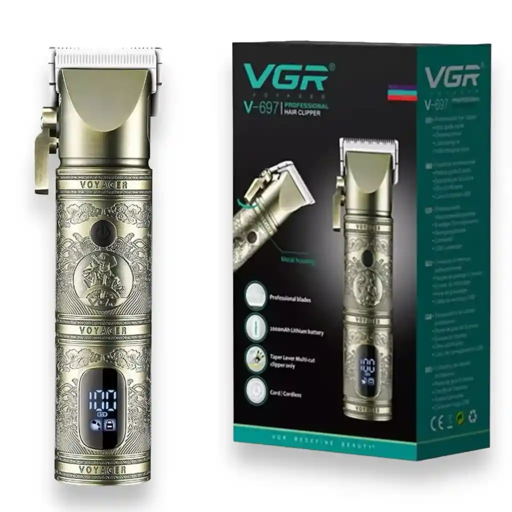 Maquina Cortadora de Cabello Inalambrica Profesional Peluquera VGR V-697 Pantalla Led de Bateria con Accesorios