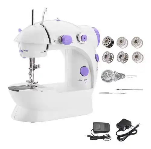 America Store te Trae Maquina Coser Portatil Mini Sewing Machine Mini maquina de coser de 2 velocidades, perfecto control de puntada, switch de mano o pedal de pie, de fácil costura, adelanta tela automáticamente, incluye 4 bobinas y un pedal de pie, compacta. Mini máquina de coser de 2 velocidades ofrece doble hilo y un perfecto control de puntadas, Para cualquier costura de telas livianos; Interruptor de mano o pedal para iniciar La bobina superior permite un fácil enhebrado; Rebobinado automático de hilo Mini máquina de coser mide aproximadamente 23x19x21 La bobina se puede alinear a mano empujándola ligeramente y girándola si es necesario FUNCIONES Y CARACTERISTICAS Ideal para viajes Portátil Ideal para cualquier tipo de prenda Compacta Novedosa Guárdala donde quieras Facil de usar CONTENIDO DEL PAQUETE 3 bobinas de metal 1 Pedal 1 adaptador eléctrico