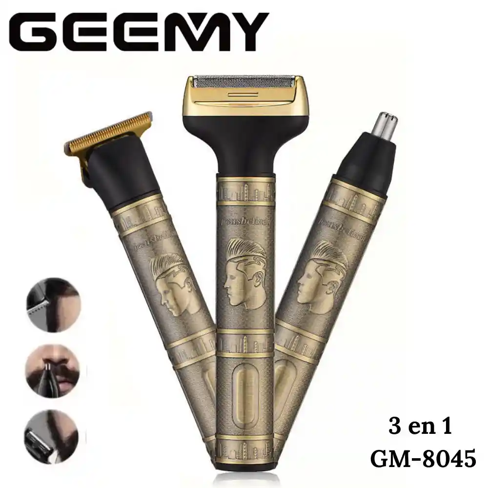 Descubre la practicidad de la Geemy GM-8045, una máquina de motilar patillera multifuncional 3 en 1, ideal para cuidar tu estilo con comodidad y precisión. Caracterìsticas: - 3 funciones en un solo dispositivo: Incluye cabezales intercambiables para perfilar barba, bigote y eliminar el vello de nariz y orejas de forma sencilla. - Corte preciso y suave: Sus cuchillas de acero inoxidable ofrecen un corte limpio sin tirones, cuidando incluso las pieles sensibles. - Diseño ergonómico: Gracias a su cuerpo antideslizante obtienes mayor control y comodidad en cada uso. -Batería de larga duración Con carga rápida en solo 2 horas y hasta 120 minutos de uso continuo. Incluye cable USB. Contenido del paquete Máquina de motilar patillera Geemy GM-8045 3 cabezales para barba, bigote y nariz/orejas Cable de carga USB Cepillo de limpieza Aceite 3 guías para diferentes tipos de corte