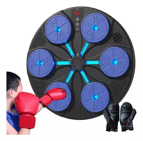 ´´NO INCLUYE GUANTES´´ ✅️La Máquina de Boxeo Musical es la herramienta de entrenamiento perfecta para quienes buscan mejorar su resistencia, agilidad y coordinación mientras disfrutan de una experiencia interactiva y emocionante. Diseñada para adaptarse a todos los niveles, desde principiantes hasta profesionales, esta máquina ofrece un entrenamiento completo y divertido para toda la familia. ✅️Es ideal para toda la familia, ofreciendo una experiencia de entrenamiento personalizada y divertida. Perfecta para mejorar tu rendimiento en deportes de combate y mantenerte en forma de manera dinámica. ✅️Funciones: 🌟9 Velocidades y 9 Modos Personalizables: Ajusta la velocidad y selecciona entre 9 modos de entrenamiento diferentes para un ejercicio que equilibra diversión y desafío. Ideal para usuarios de cualquier nivel, desde principiantes hasta expertos. 🌟Fácil Instalación y Fijación Segura: La máquina se monta fácilmente en la pared sin necesidad de taladrar. La cinta de velcro de alta resistencia asegura una fijación firme y ajustable en altura, permitiendo que tanto adultos como niños disfruten del entrenamiento. Importante: Sigue las instrucciones de fijación para una instalación correcta. 🌟Materiales Resistentes y Duraderos: La superficie de impacto está hecha de espuma de alta elasticidad para una absorción de golpes óptima, protegiendo tus manos durante el entrenamiento. Los componentes de PU robusto garantizan durabilidad y resistencia a largo plazo. Se incluyen guantes transpirables para mayor protección. 🌟Conectividad Bluetooth y Altavoces Envolventes: Empareja tu dispositivo móvil con la máquina y disfruta de tu música favorita mientras entrenas. Los altavoces mejorados y los efectos de luz sincronizados con tus movimientos añaden emoción a cada sesión.