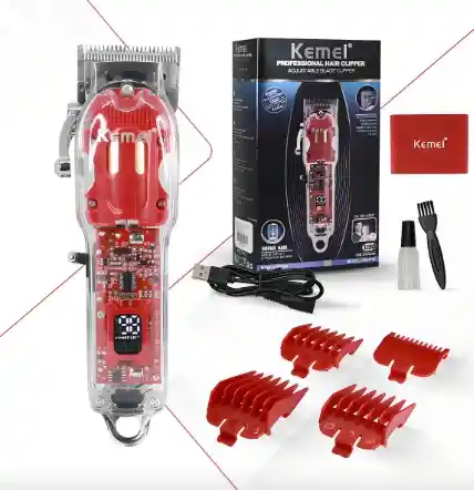 Características Destacadas: Hoja de Acero Inoxidable de Alta Calidad: Diseñada para ofrecer cortes precisos y duraderos, ideal para todo tipo de cabello. Cubierta Transparente con Base Roja: Su diseño moderno no solo es funcional, sino que también añade un toque de estilo a tu kit de herramientas. Batería de Litio de 1600mAh: Con solo 3 horas de carga, disfrutarás de 180 minutos de uso continuo, permitiéndote realizar cortes sin interrupciones. Pantalla LED de Batería Restante: Mantente informado sobre el estado de la batería para que nunca te quedes sin energía en medio de un corte. Género: Hombre, mujer, niño Tipo de Alimentación: Recargable Uso: Cara, barba, bigote, barbero Voltaje: 100-240V Motor: Muy potente Material: ABS 1 x Máquina de corte 1 x Cepillo de limpieza 1 x Cable USB 4 x Guías de corte (3/6/9/12 mm)