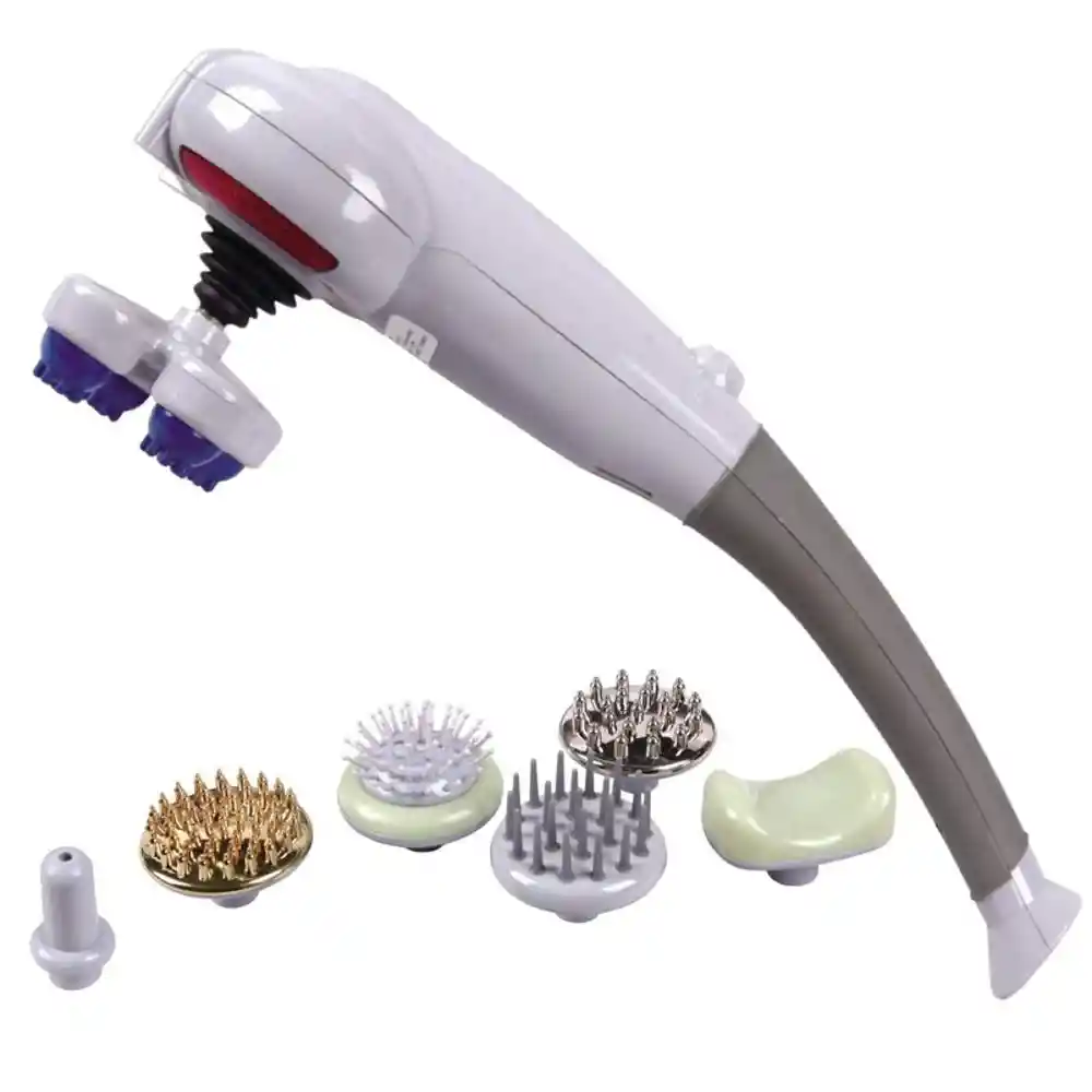 Un masajeador de cuerpo completo. Nuevo producto 2020 con 8 cabezas de masaje. Motor DC Lea el manual de instrucciones cuidadosamente y por completo antes de usar este producto por primera vez. Esto le ayudará a comprender todo el producto y le ayudará a configurar este dispositivo. La Magic Massage es un nuevo producto con 8 cabezales de masaje. * Se pueden cambiar para su requerimiento. * Se utiliza para estimular y aprovechar los puntos de acupuntura en el cuerpo, especialmente en el dolor, la planta del pie y demás partes del cuerpo a medida que recibe un tratamiento de acupuntura. * Diseñado para la eliminación de grasa y se utiliza para dar masajes en el vientre, la cintura, los muslos y los hombros. Magic Massager es una herramienta de masaje con somatología de ciencias básicas (Body Anatomical Sciences) que sirve para dar masajes a todas las partes del cuerpo, como cabeza, hombros, espalda, caderas, glúteos, muslos, pantorrillas y pies. •Beneficios · Alivia la fatiga y relaja los músculos. •Circulación sanguínea · Incrementa el metabolismo •Alineando y equilibrando las funciones de los órganos del cuerpo. •Restaura la energía del cuerpo •Relaja músculos y nervios. •Equipado con 8 cabezales de masaje diferentes. •Agarre antideslizante •Se puede llevar a cualquier lugar •Función de vibración equipada y calentadores •Fácil de sostener y cómodo, así que úselo. •Ligero •Reemplaza la necesidad de masaje manual