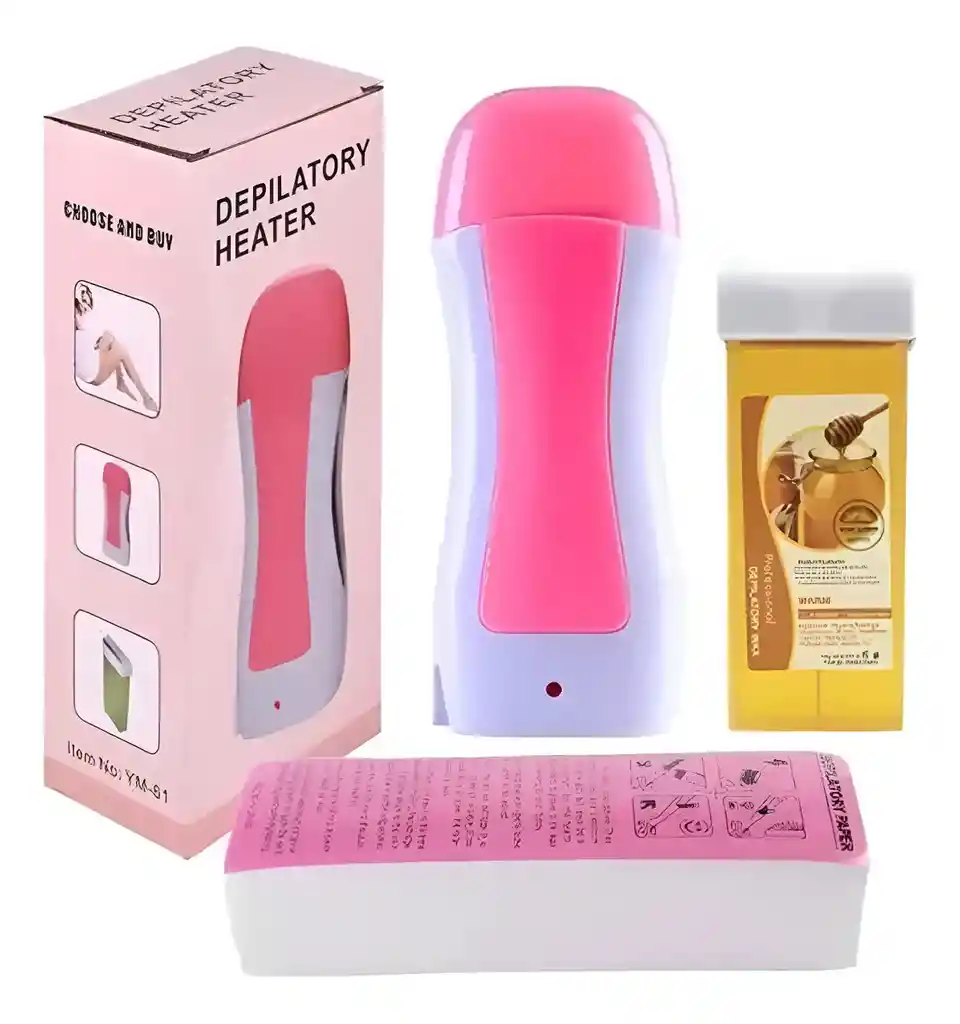 Tipo de producto: Un calentador de cera diseñado para derretir la cera y mantenerla a una temperatura ideal para su aplicación en la piel. Funcionamiento: Cuenta con calentamiento automático y es fácil de usar. Uso: Se utiliza para la depilación corporal, ofreciendo un método eficiente con poco dolor para el vello corporal. Portabilidad: Es un dispositivo pequeño y ligero, lo que facilita su transporte y uso tanto en salones como en casa. Contenido del kit: La imagen muestra el calentador, su caja de embalaje y un cartucho de cera roll-on.
