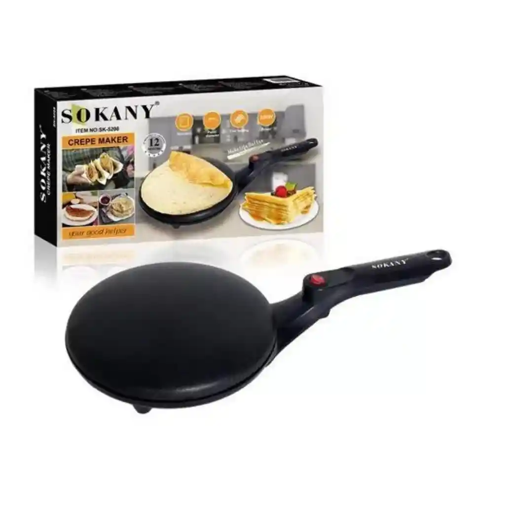 DESCRIPCCION Recubrimiento antiadherente: una plancha caliente que ofrece un funcionamiento sin problemas ya que tiene un recubrimiento antiadherente. Los alimentos cocinados en él no se pegarán ni dejarán residuos. Ideal para cocinar a un ritmo rápido, especialmente para rutinas diarias ocupadas. Este modelo es muy conveniente y asequible y puede ser utilizado por cualquier persona, incluso por aquellos que no tienen experiencia en la cocina.También viene con un interruptor de encendido/apagado en el mango. Control de temperatura: una multicocina con una superficie plana que puede cocinar una variedad de platos ya que tiene control de temperatura automático. panqueques, gofres, etc. adecuados para Diseñado con un acabado negro para una apariencia clásica y elegante que se adaptará a cualquier cocina. La crepera SOKANY SK 5208 es un modelo compacto y práctico para hacer deliciosas tortitas caseras. Está hecho de plástico duradero y resistente al desgaste, que no solo tiene un peso pequeño, sino también una larga vida útil. La crepera es un modelo compacto y práctico para hacer deliciosos crepes caseros. Está hecho de plástico duradero y resistente al desgaste, que no solo tiene un peso pequeño, sino también una larga vida útil. El material soporta cargas de alta temperatura y el mango no se calienta durante la operación. La crepera se utiliza para hacer tortitas de hasta 20 cm de diámetro, se alimenta de la red eléctrica y se enciende con un pequeño interruptor en el mango. Gracias al revestimiento antiadherente, la masa no se pega a la superficie de la sartén. Características: Potencia - 650 W Número de panqueques - 1 pieza Tamaño de panqueque - 20 cm Recubrimiento antiadherente sí El dispositivo es ideal para un regalo a amigos y familiares. Es extremadamente fácil de usar, requiere poco mantenimiento y es fácil de limpiar. El mango largo tiene una forma ergonómica, por lo que se adapta bien a la mano y no resbala cuando se lleva.