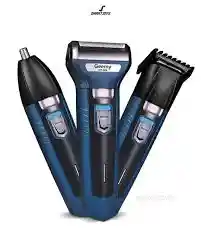 MAQUINA DE AFEITAR GEEMY GM-566 3 en 1Esta espectacular máquina de afeitar eléctrica de 3 cabezas intercambiables. Tiene 3 funciones diferentes, está equipada con los accesorios. la cual hace la afeitada mas efectiva y eficiente, sin dolor, sin quemaduras y sin irritaciones para un resultado final de una barba y bigote perfectamente diseñados y elegante, y una buena experiencia de afeitado, además cuenta con un accesorio para el pelo de la nariz y los oídosESPECIFICACIONES- Motor con rápida velocidad de rotación- Tres cabezales intercambiables- Sistema inteligente anti-clip haciéndola más duradera- Diseño ergonómico de un agarre seguro y fácil- Voltaje 110- Baterías de litio recargables- Larga vida útil y rendimiento estable- Incluye cable de corriente- Producto 100% Original