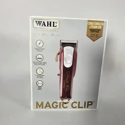 La máquina de motilar Magic Clip inalámbrica es una herramienta profesional equipada con cuchillas 2161 de alta precisión con tecnología crunch para un corte más rápido y una mezcla optimizada. Su diseño liviano y sin cable ofrece comodidad y facilidad de uso, mientras que su batería de iones de litio proporciona un tiempo de ejecución de más de 90 minutos por carga. Características Cuchillas de dientes escalonados. Batería de iones de litio, duración: 90 minutos. Incluye 8 peines (1½ mm, 3 mm, 4½ mm, 6 mm, 10 mm, 13 mm, 19 mm, 25 mm). Palanca cónica para desvanecidos. Recomendaciones de uso Cargue completamente la máquina antes de usarla. Limpie y lubrique las cuchillas después de cada uso para prolongar su vida útil. Garantía Por defectos de fabricación. La garantía cubre 1 año bajo un uso adecuado del producto. No cubre daños por golpes, mal uso o exposición a humedad.