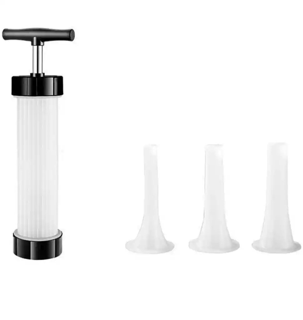 Embutidora manual para embutidora, embutidora, herramienta de llenado de, herramienta de cocina para salami Descripción: Esta máquina de hacer es perfecta para hacer salchichas, salchichas, hot muchos más. Fácil de usar: empuja el mango, tus están en unos minutos. Viene con 3 tubos de relleno de diferentes diámetros de 14 mm, 18 mm y 20 mm que le permiten hacer una gran variedad de y hacer fácilmente en casa. El fabricante de fabricado con pistón de silicona para garantizar que no quede aire dentro de las Un diseño totalmente desmontable es fácil de limpiar después de cada uso. Perfecto para hacer en casa. Especificación: Material: plástico y acero inoxidable Carta del tamaño: 10,6x30,2 cm/4,17x11,89 pulgadas El paquete incluye: 1 máquina para embutir. 3* tubos