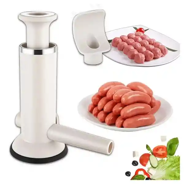Máquina para hacer salchichas y embutidos fabricada en pasta que puede hacer de tus embutidos, salchicas o albóndigas. La máquina de salchichas es fácil de desmontar, el diseño extraíble es conveniente para limpiar. Diseño vertical con una capacidad de 2.2 lb, ideal para reuniones familiares, uso diario para cocinar, disfrutar de la diversión casera.