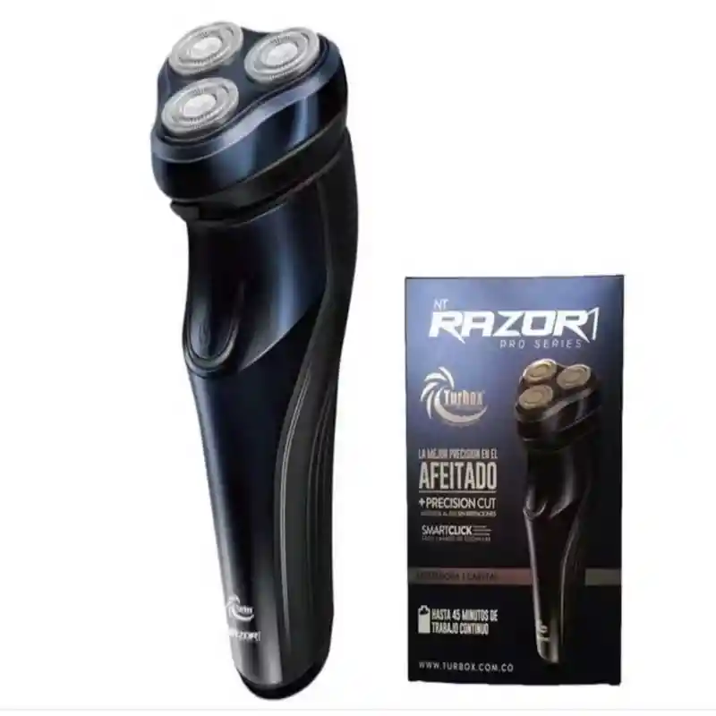 Máquina afeitadora Turbox Razor NT1 3 Cabezas Para Barba Afeitadora de última generación turbox nt-razor de 3 cabezas flexibles para toda la libertad que necesitas al momento de hacerte tu afeitada, con su sistema de fácil lavado de cuchillas con indicador de carga para mostrarte como va el estado de su batería. Con trimer para barba y bigote batería de hasta 45 minutos de trabajo continuo. Cuchillas flotantes con tecnología de precisión, sistema de corte para afeitadas al ras diseño elegante y ergonómico con botón táctil.
