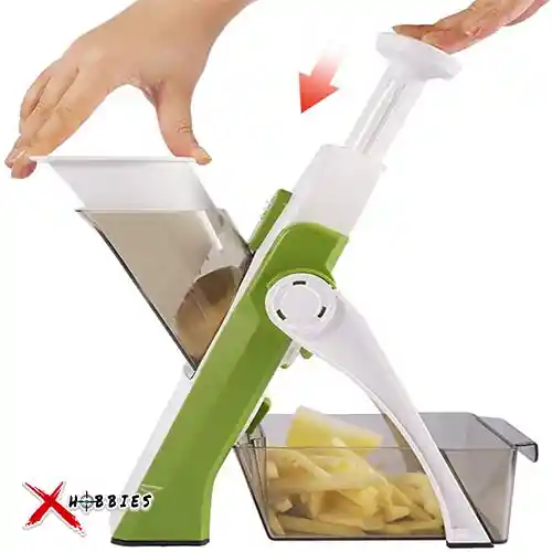 Deja ya de perder el tiempo en la cocina mientras que preparas tus deliciosas recetas. Prepara tus vegetales para las recetas deliciosas en cuestión de segundos. ¡Llegó la solución para las cocinas Colombianas! CARACTERÍSTICAS: El diseño único evita que tus manos se acerquen a las cuchillas integradas, haciendo de esta herramienta la opción más segura para una rebanada experta. Las cuchillas permiten flexibilidad para cortar, cortar, triturar, picar frutas y verduras fácilmente en formas y tamaños. Como una patata, puede convertirla en rodajas onduladas o normales, tiras o triturarla fácilmente. Hoja de acero inoxidable ultra afilada que puede ayudarte a acortar el tiempo de preparación en comparación con las cuchillas tradicionales de corte. Esta herramienta es fácil de cortar verduras y frutas. Diseño compacto, para un fácil almacenamiento, mientras que el cepillo incluido elimina la acumulación en las cuchillas y el contenedor de captura de alimentos mantiene las encimeras limpias. Hecho principalmente de material ABS, no contiene BPA, no tóxico e insípido, fácil de limpiar. No produce sustancias nocivas, puede estar seguro de usarlo. La herramienta multifuncional para verduras está diseñada para picar todo tipo de alimentos, como cebolla, patata, seta, pepino, zanahoria, tomate, jengibre, ajo, queso, etc. Las cuchillas ocultas lo hacen más seguro. Sin cambiar las cuchillas, solo girando las 3 perillas, puede cortar la comida en varias formas y grosores. Debido a que la hoja es muy afilada, no la toque fácilmente al limpiar, intente usar el cepillo incluido. MODO DE USO: Primero retire la tapa central, llevando su seguro hacia arriba. Posteriormente instale el recipiente para triturar. Despliegue las patas posteriores para tener firmeza en el recipiente. Gire la perilla/soporte central hacia un lado para que esta se estire completamente y le permita el correcto funcionamiento de la máquina. Instale en su posterior la bandeja para recibir los alimentos procesados. La máquina está lista para utilizarse correctamente. Cuando termine de usarla, puedes limpiarla con el cepillo incluido y volver a plegarla para un fácil almacenamiento. ESPECIFICACIONES: Material: ABS + Acero Inoxidable. Dimensiones: 38cm x 18cm x 12cm. Peso: 665g. INCLUYE: 1 Máquina Rebanadora/Cortadora de verduras. 1 Recipiente para verduras. 1 Triturador. 1 Bandeja. 1 Cuchilla de repuesto. 1 Brocha limpiadora. 1 Manual de usuario.