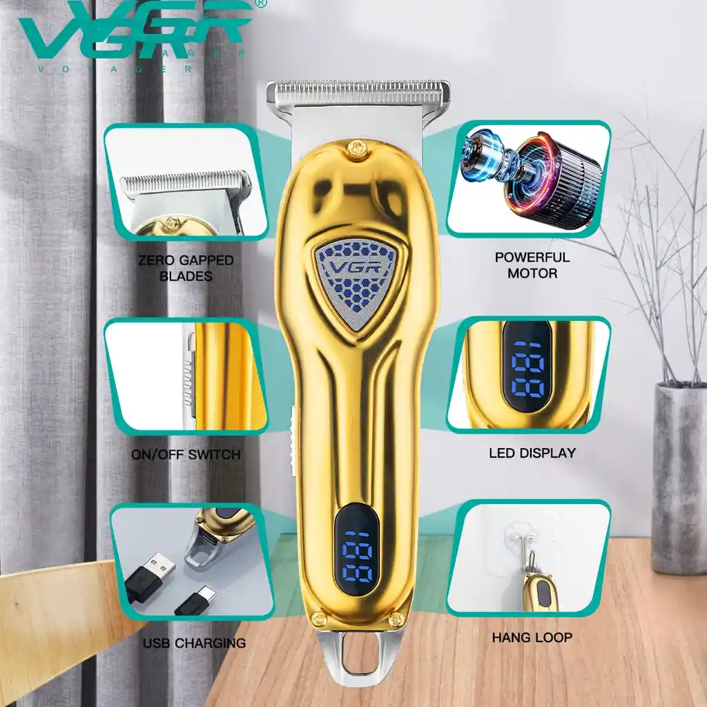 El VGR V-902 es un cortapelos profesional inalámbrico, diseñado para ofrecer versatilidad, precisión y comodidad en barberías o uso personal avanzado. Su diseño elegante y ergonómico permite un manejo firme y controlado durante cada corte. Cuenta con 4 cabezales reemplazables, ideales para diferentes estilos de corte, contornos, rebajes y acabados detallados. Incorpora pantalla LED digital, que muestra el nivel de batería para un mejor control durante el uso. Su batería recargable brinda una excelente autonomía, permitiendo trabajar sin cables y con total libertad de movimiento. Las cuchillas de alta precisión garantizan cortes suaves, uniformes y sin tirones. Características destacadas: Cortapelos profesional inalámbrico 4 cabezales reemplazables Pantalla LED indicadora de batería Cuchillas de alta precisión Batería recargable de larga duración Diseño ergonómico y elegante Accesorios incluidos: 4 cabezales de corte Peines guía Cepillo de limpieza Aceite lubricante Cable de carga USB