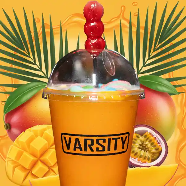 Granizado de 16oz, fusión de maracuyá y mango, el kit de dulces, perlas explosivas y geringa genera un costo adicional.