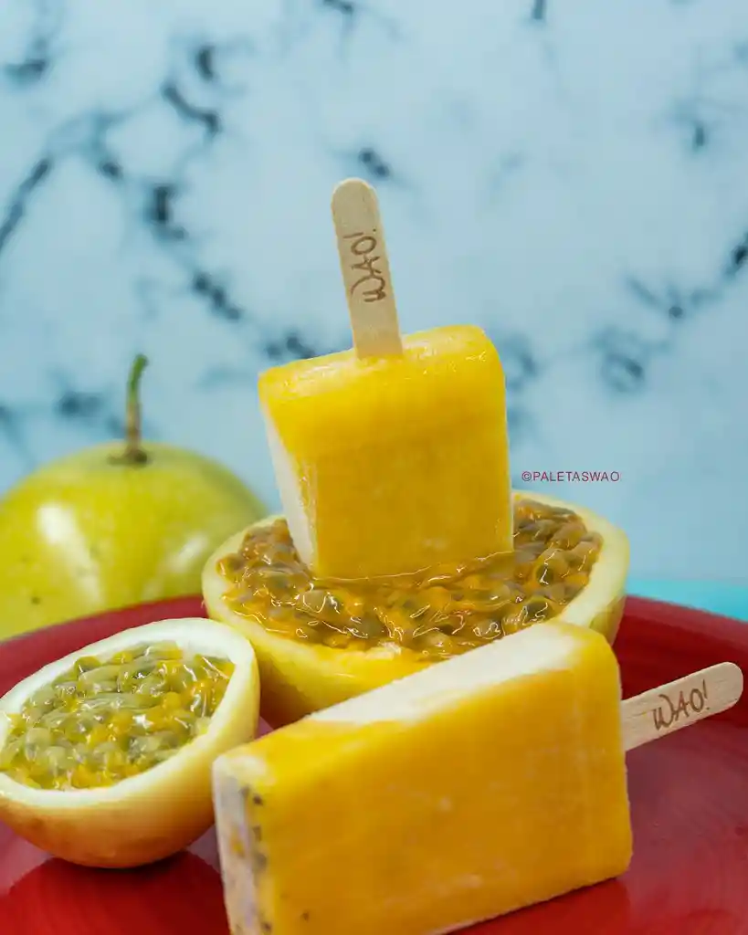 PALETA FRUTAL A BASE DE AGUA CONTIENE SEMILLAS DE MARACUYÁ RELLENA DE LECHERA