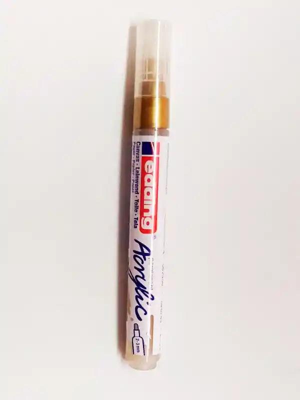 Marcador acrílico para pintar en superficies tanto claras como oscuras, ideal para materiales como lienzos o papel para pintar. El grosor de trazo de la punta redonda es de 2-3 mm.