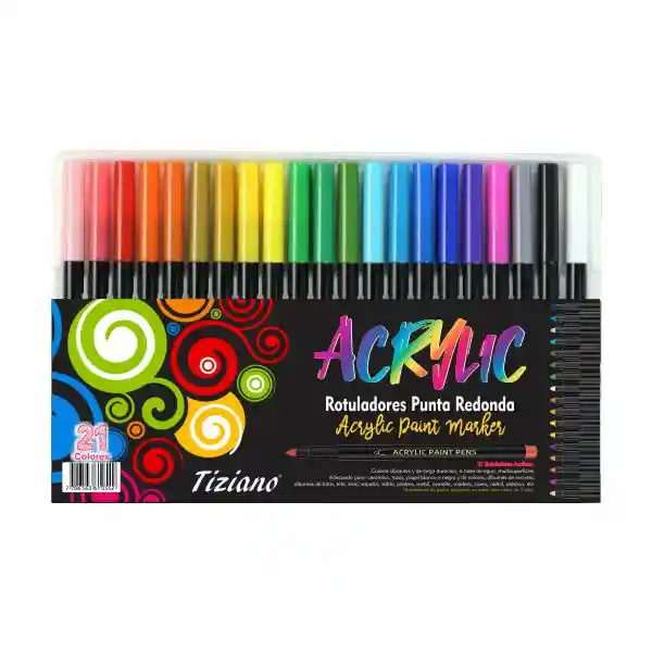 Marcador Acrílico Multisuperficie Punta Redonda * 21 Unidades Colores vibrantes, a base de agua, multisuperficies, colores de larga duración, tapa de seguridad, tinta de flujo libre, secado rápido y sin goteo de pintura, no se decolora. Adecuado para: cerámica, tazas, papel blanco o negro y de colores, álbumes de recortes, álbumes de fotos, tela, lona, zapatos, vidrio, rocas, metal, esmalte, cuero, metal, plástico, etc.