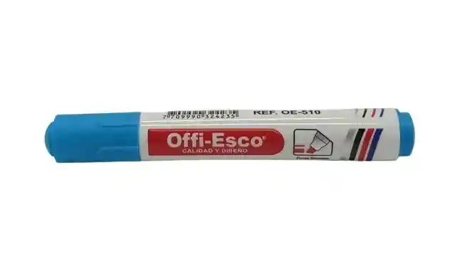 MARCADOR BORRABLE AZUL TURQUESA OFFI ESCO OE-510. Punta Japonesa, Tinta Koreana de secado rápido, no mancha. Utilice sobre tablero acrílico, Metal, Vidrio, Laminados. EAN 7709990324235