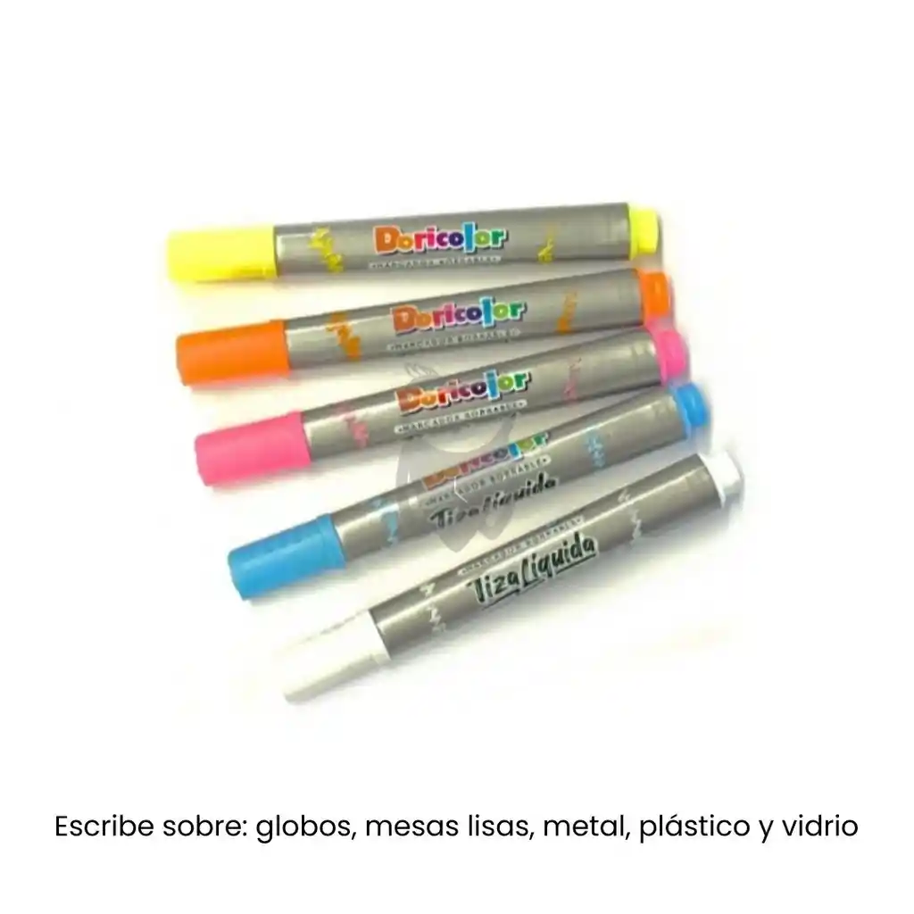 Marcador borrable tiza líquida x 5 Doricolor. Ideal para tableros lisos u oscuros.