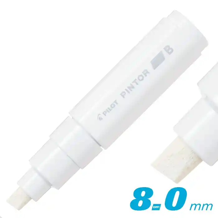 Marcador de Pintura Pilot Pintor – Vinilo Blanco Marcador de pintura a base de vinilo color blanco, ideal para trazos precisos y de alta cobertura. Cuenta con punta biselada de 8.0 mm, perfecta para líneas gruesas, rellenos y rotulación visible. Su tinta es opaca, resistente y de secado rápido, ofreciendo un acabado uniforme y duradero. Funciona excelente sobre diversas superficies como cartón, papel, madera, vidrio, plástico, metal y cerámica. Ideal para uso artístico, escolar, manualidades, señalización y trabajos profesionales. ✨ Color: Blanco ✨ Punta: Biselada 8.0 mm ✨ Tipo de tinta: Vinilo, alta cobertura ✨ Uso: Profesional y creativo