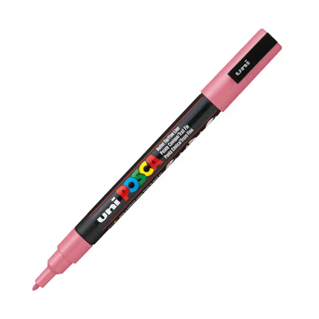 Marcador Gráfico, De Vinilo, Posca Punta Pc-3M. Trazo entre 0.9 - 1.3 mm Somos Bocetos Papelería. Empresa Santandereana, ubicados en Bucaramanga, con más de 35 años en el mercado, orgullosos de ser distinguidos en el ámbito comercial, por cumplir a cabalidad nuestra mayor política: brindar siempre y en todo momento una experiencia de satisfacción total a las necesidades de nuestros clientes. El Posca PC-3M punta media es el más versátil de la gama. Es una referencia apreciada tanto por los profesionales como por los aficionados por su trazo nítido y preciso que permite realizar coloreados impecables. USO PREVISTO El PC-3M es utilizado por múltiples y variados usuarios: los artistas y profesionales de la creación como arquitectos y agencias; los aficionados a las manualidades y la decoración de interiores; los surfistas y los skaters para personalizar sus tablas. Por su facilidad de uso, también es ideal para que los principiantes se atrevan a expresar su creatividad. Ideal para personalizar superficies porosas irregulares, como madera, piedra, vidrio, pared, graffiti PIGMENTOS INALTERABLES EN VINILO BASE AGUA ALTA RESISTENCIA UV SECADO RÁPIDO Permanente en superficies porosas y borrable en la mayoría de materiales lisos no porosos, se puede optimizar su fijación aplicando un barniz SUPERPONIBLE La pintura POSCA, densa y cubriente, es ideal para las superposiciones. Los colores oscuros se pueden aplicar sobre colores claros y viceversa. Y, gracias a su secado rápido, se pueden realizar fácilmente superposiciones sin rebosaduras.