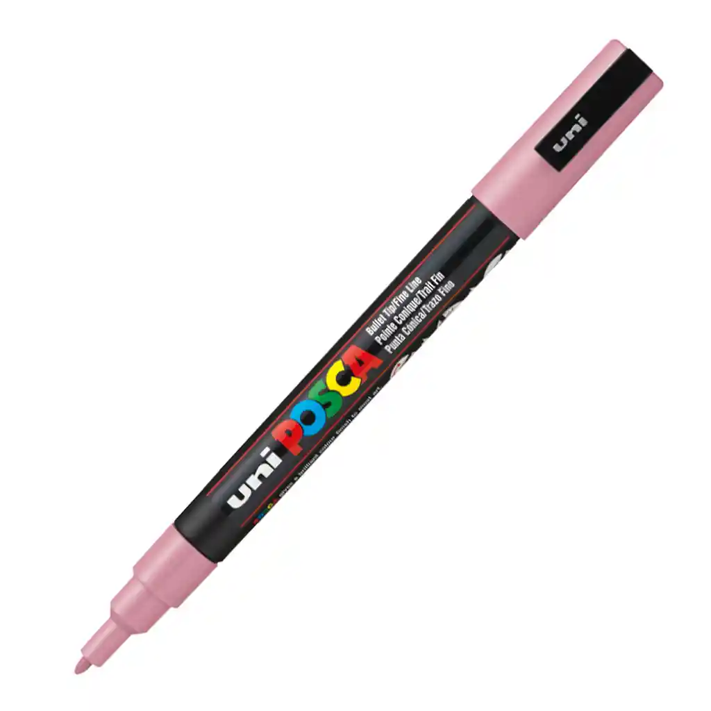 Marcador Gráfico, De Vinilo, Posca Punta Pc-3M. Trazo entre 0.9 - 1.3 mm Somos Bocetos Papelería. Empresa Santandereana, ubicados en Bucaramanga, con más de 35 años en el mercado, orgullosos de ser distinguidos en el ámbito comercial, por cumplir a cabalidad nuestra mayor política: brindar siempre y en todo momento una experiencia de satisfacción total a las necesidades de nuestros clientes. El Posca PC-3M punta media es el más versátil de la gama. Es una referencia apreciada tanto por los profesionales como por los aficionados por su trazo nítido y preciso que permite realizar coloreados impecables. USO PREVISTO El PC-3M es utilizado por múltiples y variados usuarios: los artistas y profesionales de la creación como arquitectos y agencias; los aficionados a las manualidades y la decoración de interiores; los surfistas y los skaters para personalizar sus tablas. Por su facilidad de uso, también es ideal para que los principiantes se atrevan a expresar su creatividad. Ideal para personalizar superficies porosas irregulares, como madera, piedra, vidrio, pared, graffiti PIGMENTOS INALTERABLES EN VINILO BASE AGUA ALTA RESISTENCIA UV SECADO RÁPIDO Permanente en superficies porosas y borrable en la mayoría de materiales lisos no porosos, se puede optimizar su fijación aplicando un barniz SUPERPONIBLE La pintura POSCA, densa y cubriente, es ideal para las superposiciones. Los colores oscuros se pueden aplicar sobre colores claros y viceversa. Y, gracias a su secado rápido, se pueden realizar fácilmente superposiciones sin rebosaduras.