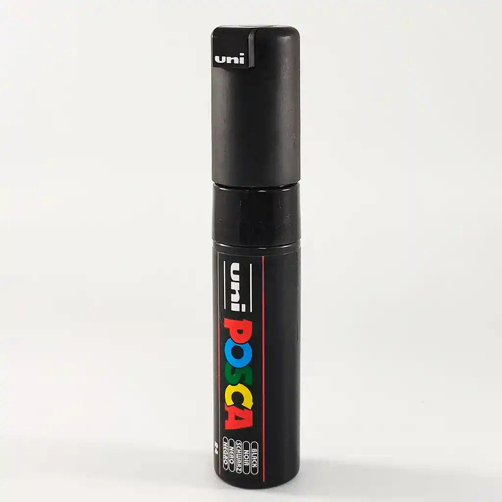 Marcador de vinilo, gráfico posca REF PC-7M Negro, Con punta redonda Trazo de 4.5mm hasta 5.5mm Somos Bocetos Papelería. Empresa Santandereana, ubicados en Bucaramanga, con más de 40 años en el mercado, orgullosos de ser distinguidos en el ámbito comercial, por cumplir a cabalidad nuestra mayor política: brindar siempre y en todo momento una experiencia de satisfacción total a las necesidades de nuestros clientes. USO PREVISTO El PC-7M es utilizado por múltiples y variados usuarios: los artistas y profesionales de la creación como arquitectos y agencias; los aficionados a las manualidades y la decoración de interiores; los surfistas y los skaters para personalizar sus tablas. Por su facilidad de uso, también es ideal para que los principiantes se atrevan a expresar su creatividad. Ideal para personalizar superficies porosas irregulares, como madera, piedra, vidrio, pared, graffiti PIGMENTOS INALTERABLES EN VINILO BASE AGUA ALTA RESISTENCIA UV SECADO RÁPIDO Permanente en superficies porosas y borrable en la mayoría de materiales lisos no porosos, se puede optimizar su fijación aplicando un barniz SUPERPONIBLE La pintura POSCA, densa y cubriente, es ideal para las superposiciones. Los colores oscuros se pueden aplicar sobre colores claros y viceversa. Y, gracias a su secado rápido, se pueden realizar fácilmente superposiciones sin rebosaduras.