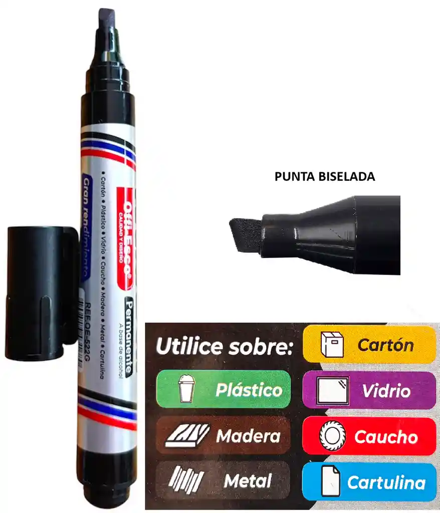 Marcador Permanente Offi-esco Oe-522G Negro. Ideal para oficina, estudio e industria. Fabuloso rendimiento, facil de llevar, marca en todo tipo de superficie: Plastico, cartón, vidrio, madera, caucho, metal, cartulina.