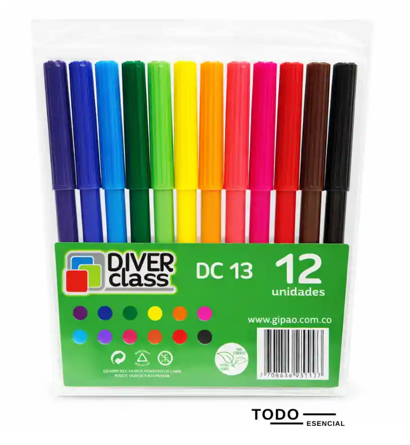 Marcador Plumón Diverclass x12 - Punta delgada - Incluye 12 colores