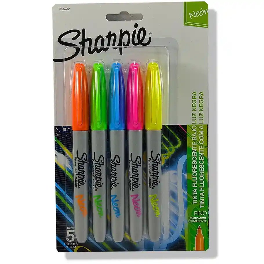Marcador Sharpie Color Neon Tinta Fluorescentes Bajo Luz Negra Caja X5