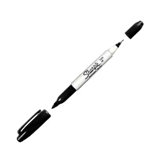 Marcador sharpie doble punta negro, Punta fina, infinitamente versátil, realizan marcas llamativas y detalladas, Punta ultra fine, delgada y precisa para un control extremo, Tinta permanente que marca en papel, plástico, metal y la mayoría de las superficies, Colores intensos y brillantes ayudan a crear ilustraciones impresionantes. Tinta que seca rápidamente y es notablemente resistente a la decoloración y el agua se vende mínimo 3 unidades de este producto.