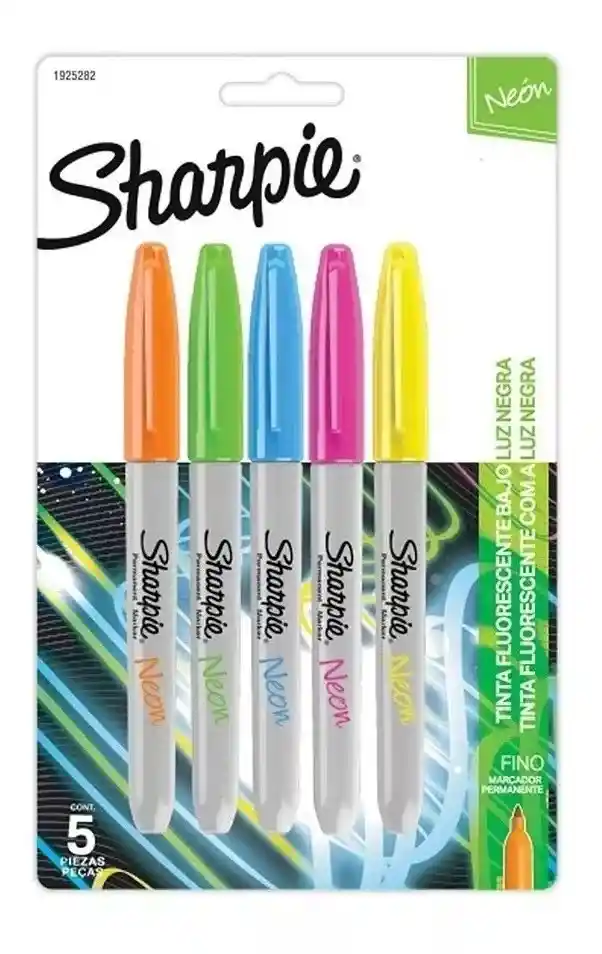 Destapa el Neon completo. Electrifique su mensaje y su audiencia con los rotuladores permanentes de punta fina Sharpie Neon vívidamente luminosos. Brillantes a la luz del día y fluorescentes bajo la luz negra, estos marcadores Sharpie hacen que toda su escritura y arte destaquen con un impacto eléctrico. Cada marcador de punta fina Sharpie Neon está repleto de tinta de secado rápido, resistente a la decoloración y al agua que está diseñada para hacer marcas abrasadoras en la mayoría de las superficies. Vuelva a imaginar qué color puede ser desatando la diversión fluorescente