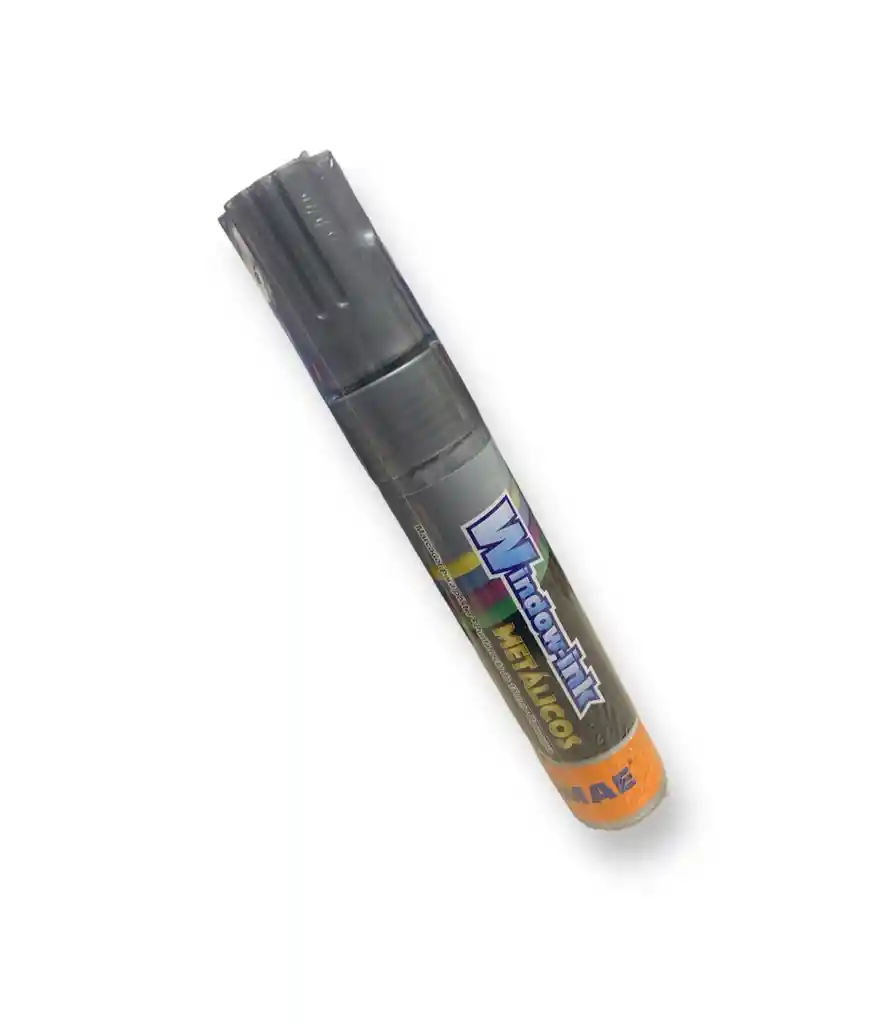 MARCADOR WINDOW INK PLATEADO METALICO PUNTA RECTA 15MM BASE AGUA El Marcador Window Ink Metálico Plateado es la elección perfecta para quienes buscan trazos llamativos, brillantes y con acabado profesional. Su tinta base agua ofrece un color metálico intenso que resalta en superficies como vidrio, acrílico, pizarras, espejos o carteles, siendo ideal para decoración, señalización o escritura creativa. Cuenta con una punta recta de 15 mm, que permite realizar líneas gruesas y uniformes, facilitando la cobertura en espacios amplios. Además, su tinta es fácil de limpiar en superficies no porosas, brindando practicidad y versatilidad.