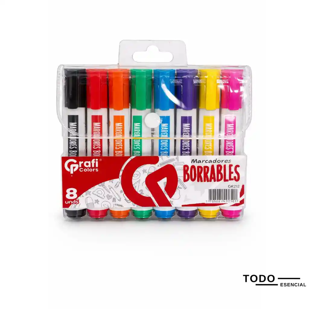 🖍️ Marcadores Borrables Grafi Colors – Set x8 Dale color y organización a tus ideas con este set de 8 marcadores borrables 🌈, ideales para pizarra blanca, clases, oficina y uso escolar. Su tinta es de secado rápido ⏱️, se borra fácilmente ✨ y no deja manchas. 📦 Incluyen un estuche transparente para guardarlos y transportarlos con comodidad. 🎨 Colores intensos para escribir, resaltar y crear con claridad. 🔹 Colores incluidos: ⚫ Negro | 🔴 Rojo | 🟠 Naranja | 🟢 Verde | 🔵 Azul claro | 🟣 Morado | 🌸 Rosado | 🟡 amarillo ✅ Prácticos ✅ Resistentes ✅ Perfectos para estudio y trabajo